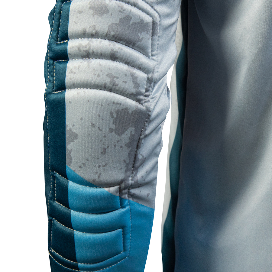 Diseño y confección: Frente y mangas sublimado, aplicaciones de malla textil en los costados para tener una mejor transpiración y llevar el calor hacia afuera. Combinación de diferentes telas en frente, espalda y brazos. Cuello redondo que facilita la entrada y salida de la cabeza. Logo impreso. Protección en codos y antebrazo.